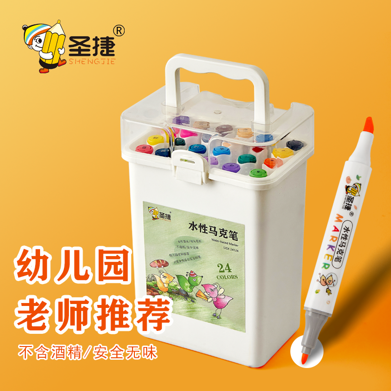 圣捷 水性马克笔 儿童三角杆双头水性彩笔记号笔 学生绘画笔