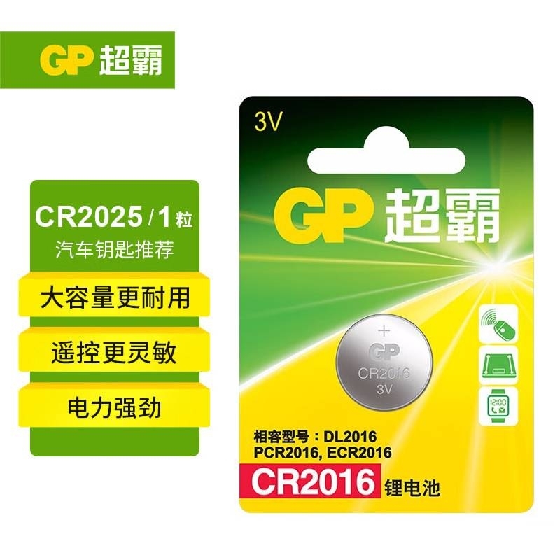 超霸(GP)CR2016进口纽扣电池5粒3V锂电池 适用汽车钥匙