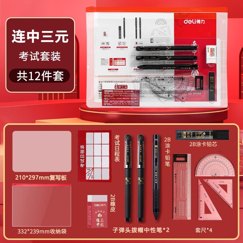 得力连中三元考试专用套装学生考试套装高考文具金榜题名礼物中考成人