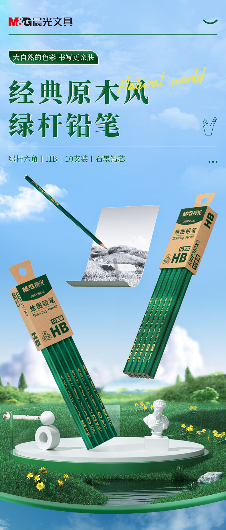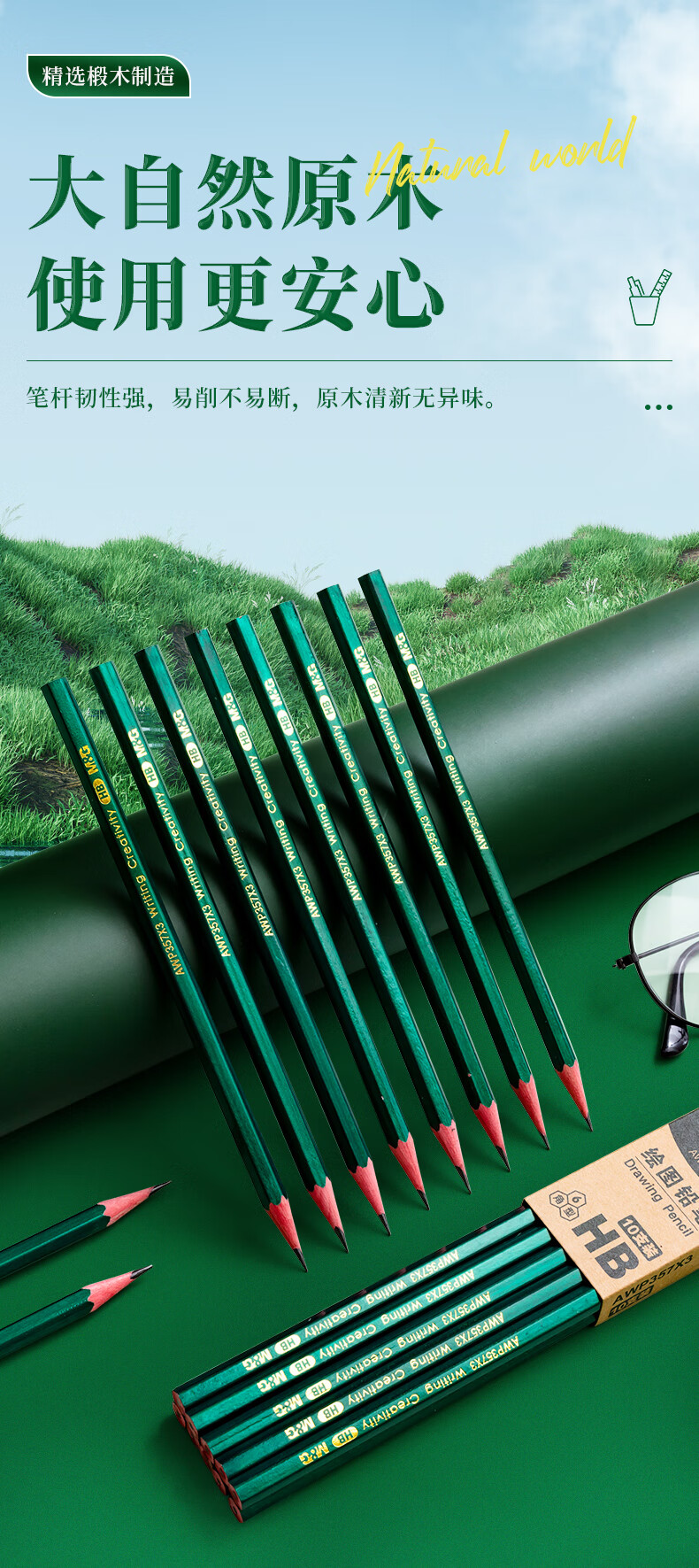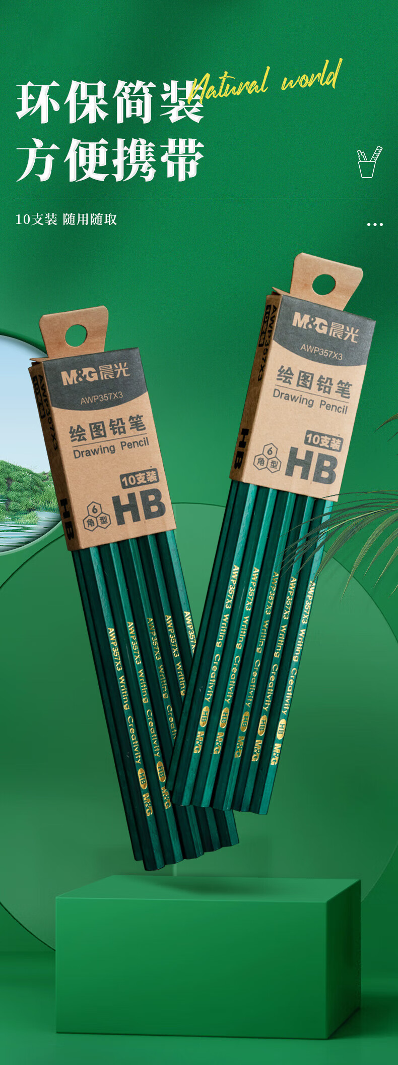 规格: HB铅笔-10支/盒