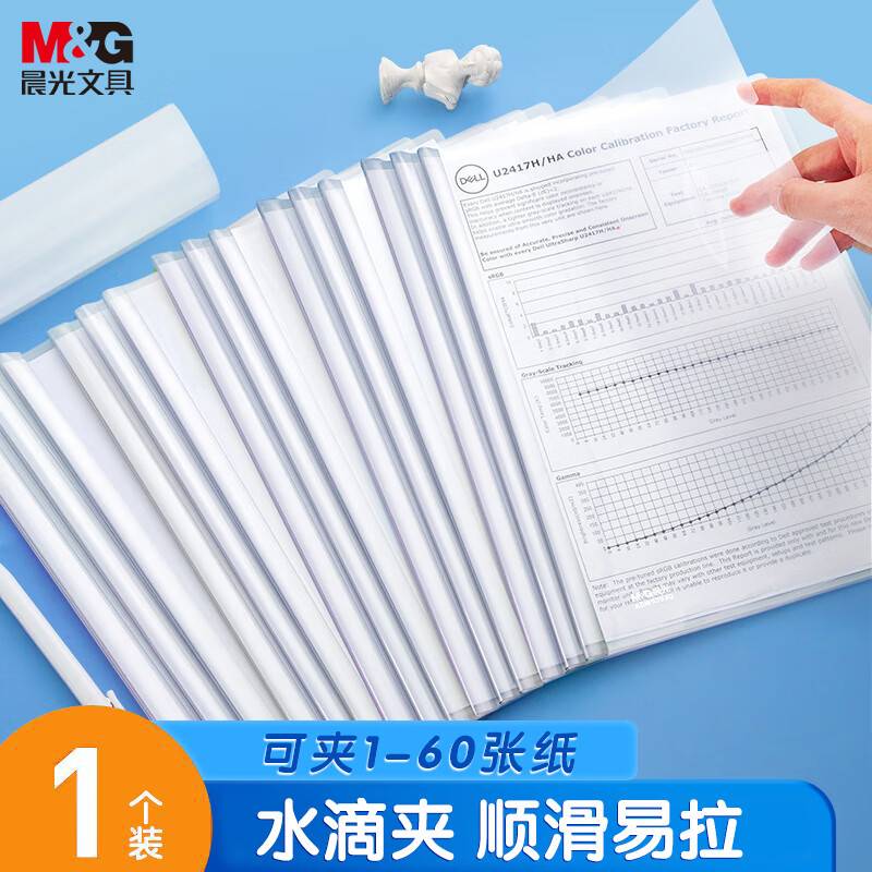 晨光(M&G)加厚透明抽杆夹8mm水滴拉杆夹文件夹 学生简历夹 透明白ADM929JQ