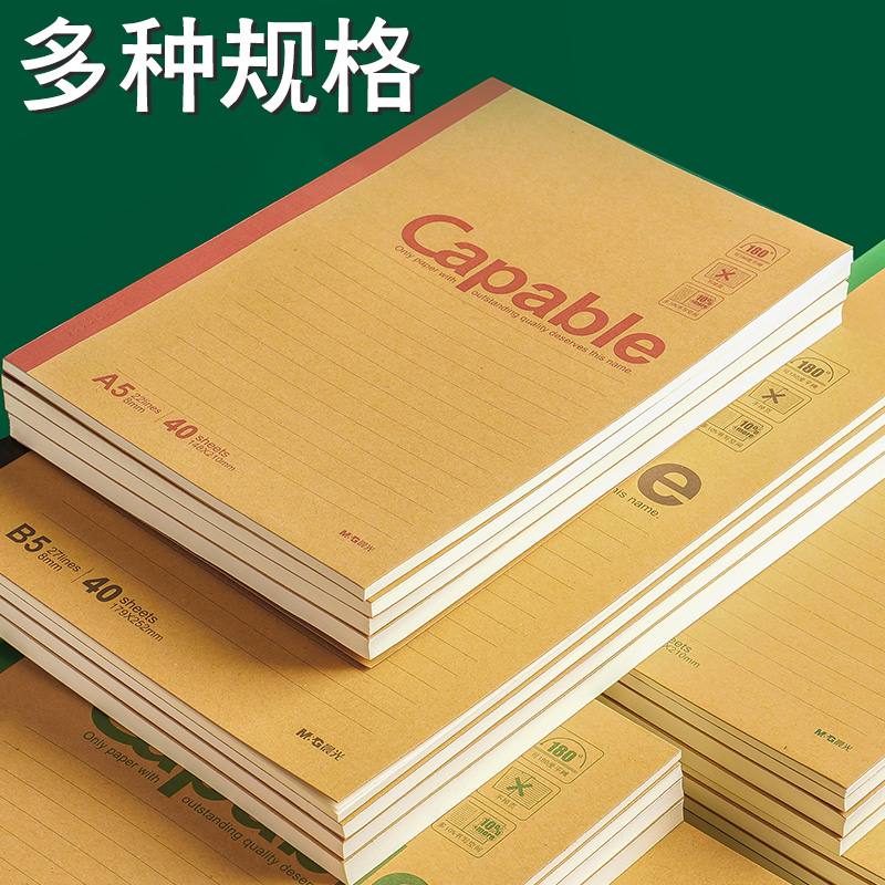 规格: A4-60页/本 A4-80页/本 A4-100页/本 A5-30页/本 A5-40页/本 A5-50页/本 A5-60页/本 A5-80页/本 A5-100页/本 B5-40页/本 B5-60页/本 B5-80页/本 B5-100页/本