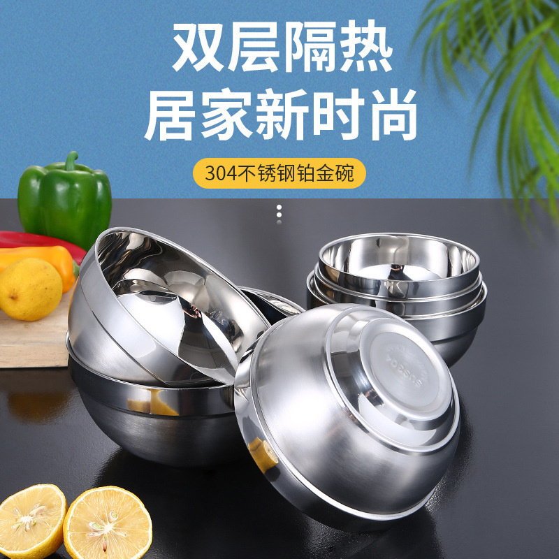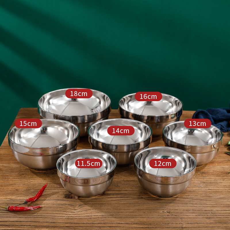 规格: 304不锈钢双层碗11.5cm 304不锈钢双层碗14cm 304不锈钢双层碗16cm 304不锈钢双层碗18cm 304不锈钢双层碗20cm