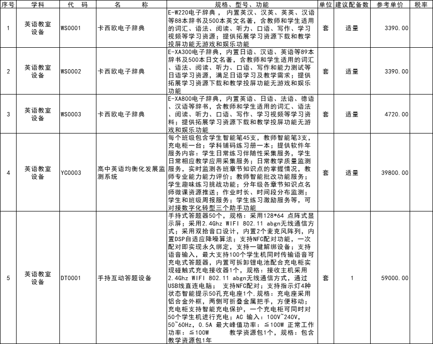 高中英语教室设备