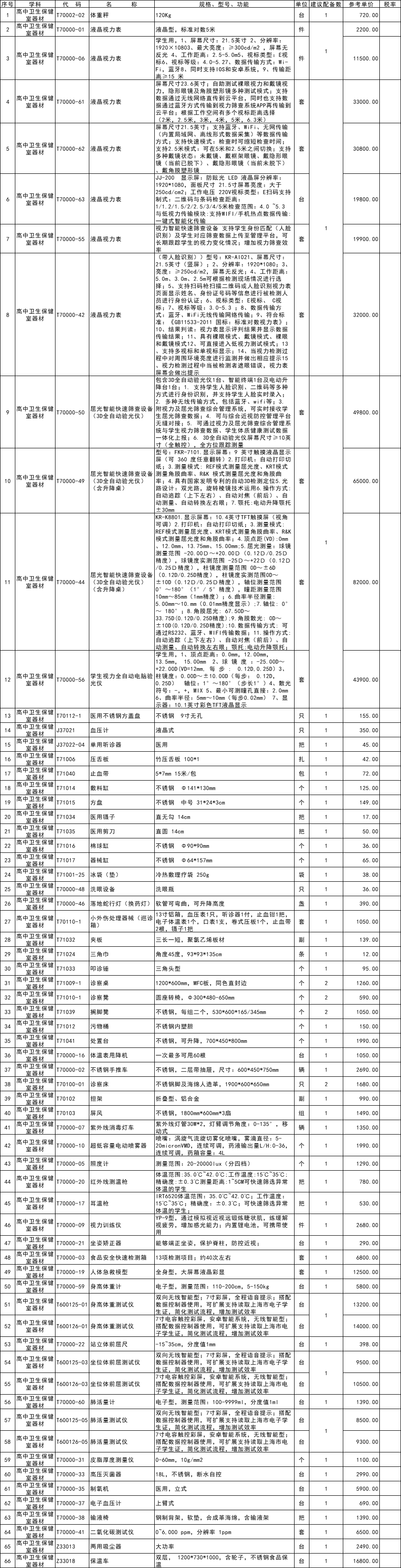 高中卫生保健室器材