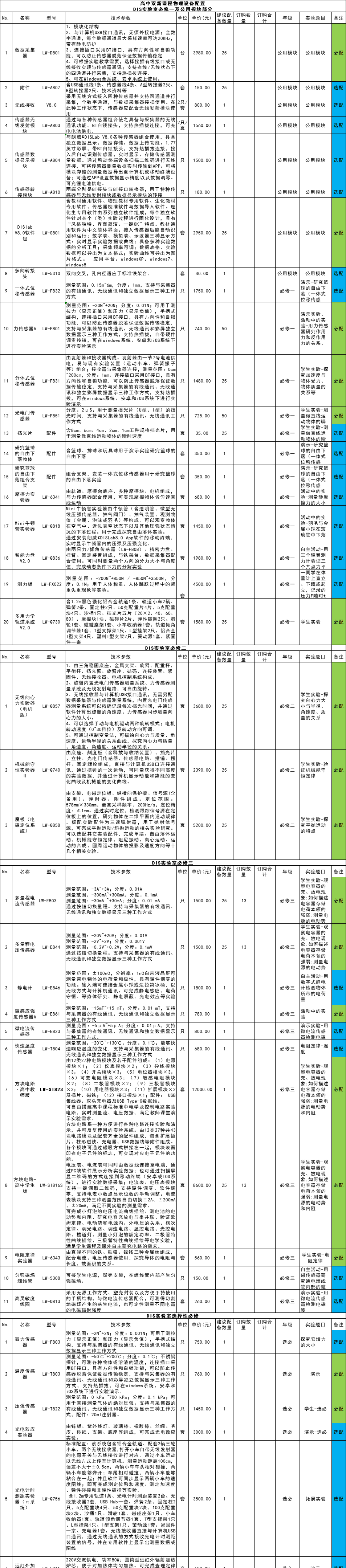 高中双新课程物理设备配置