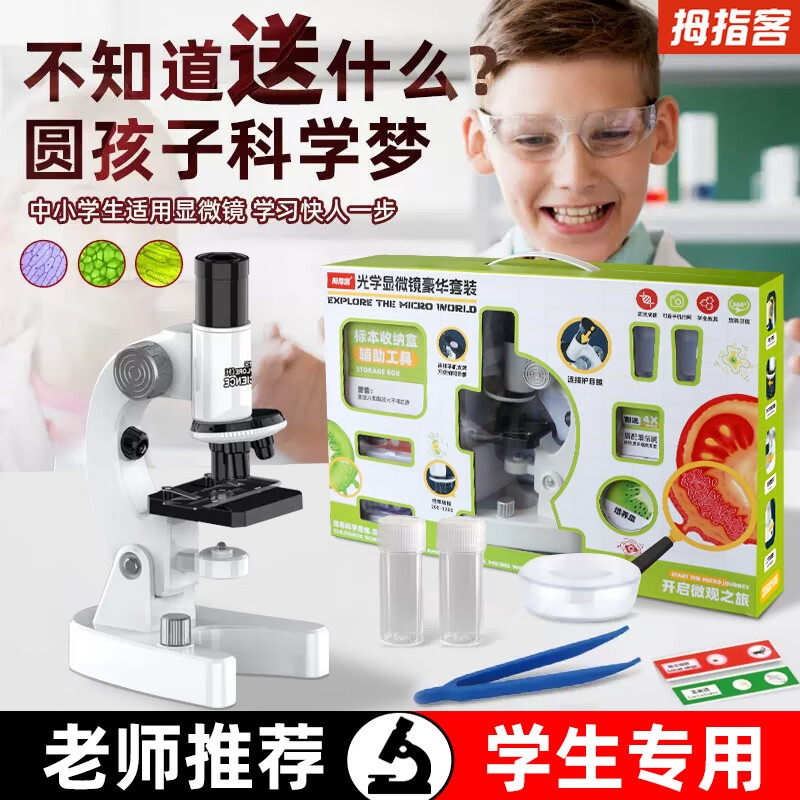 拇指客显微镜儿童超高清光学科学实验套装生日礼物STEAM教玩具开学必备