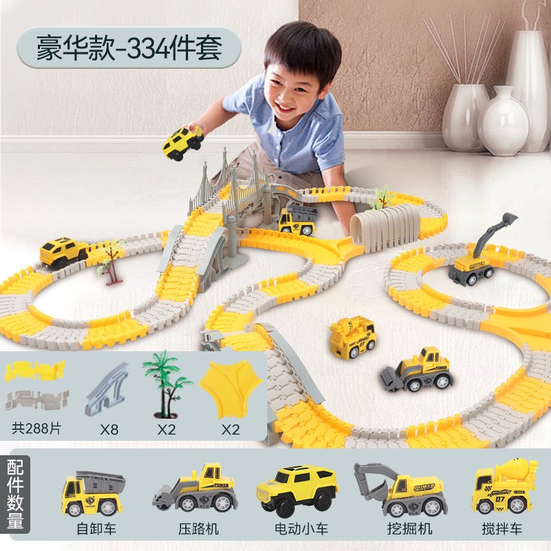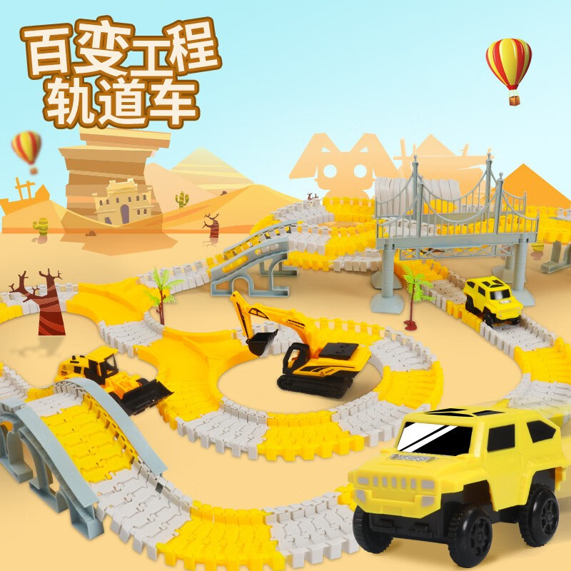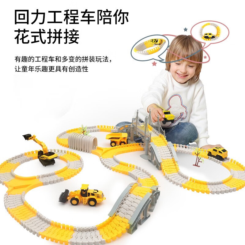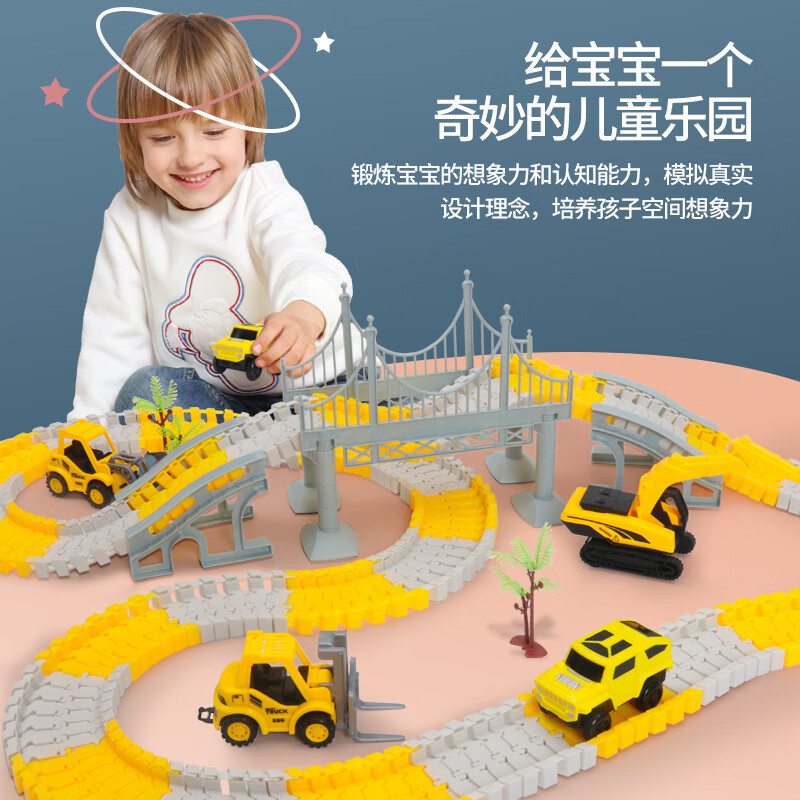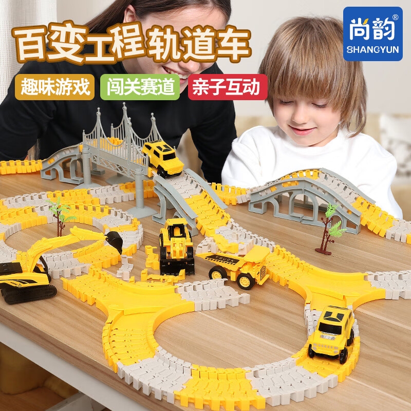 尚韵六一儿童节百变diy拼装电动轨道车玩具汽车闯关大冒险男孩礼物