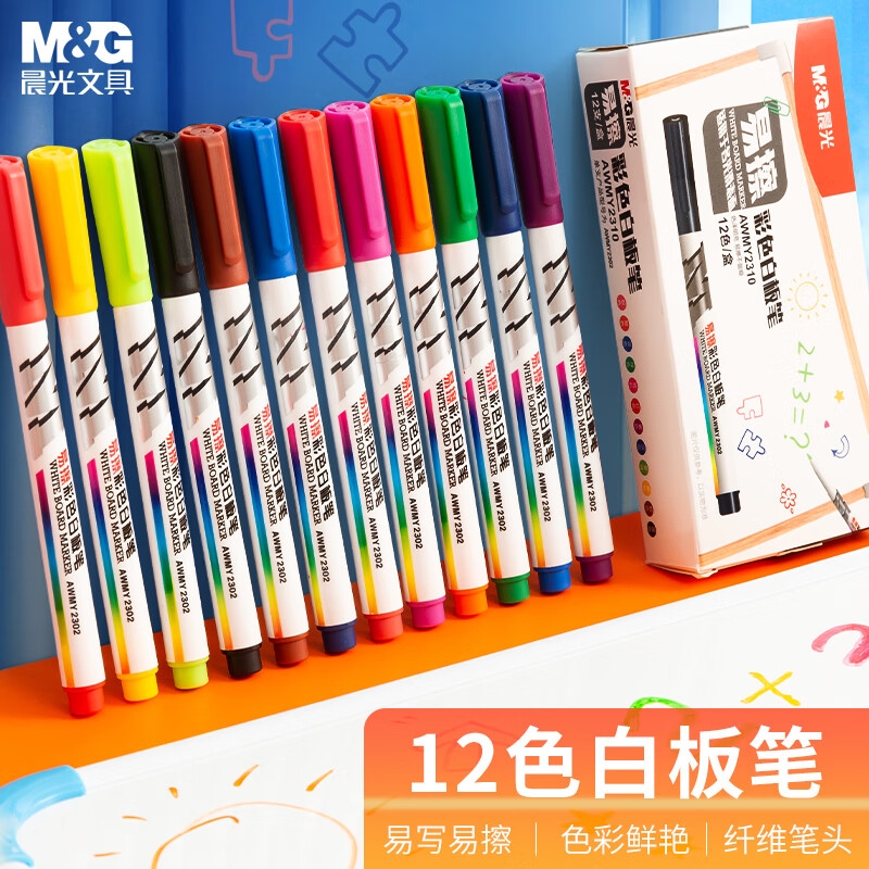 晨光(M&G) 彩色白板笔 12色单头可擦写画笔 儿童幼