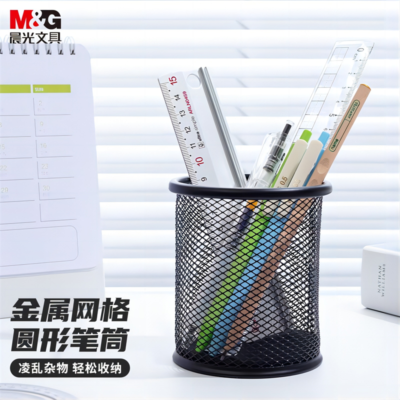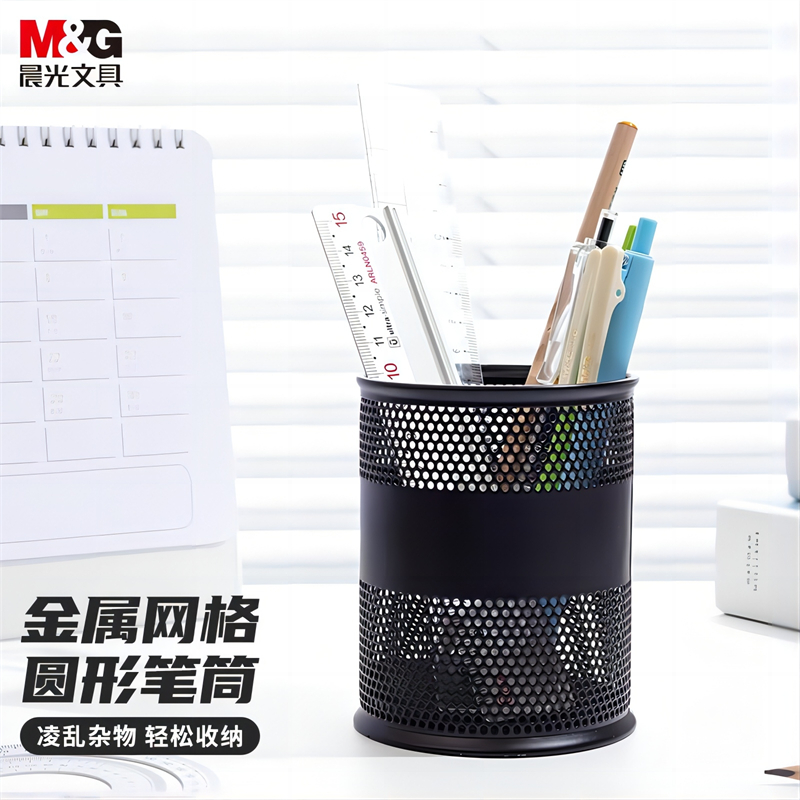 晨光(M&G)文具金属圆形网格笔筒 学生办公通用桌面收纳