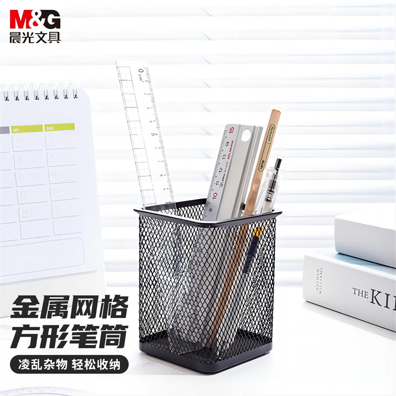 晨光(M&G)文具金属时尚网格方形笔筒_学生办公用品_桌